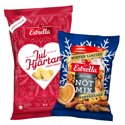 Julhjärtan Cream Cheese är tillbaka, lika spröd och med samma krämiga smak som förra julen. I år får den dessutom sällskap av en helt ny nötmix i vinterskrud – Nötmix med smak av pepparkaka.